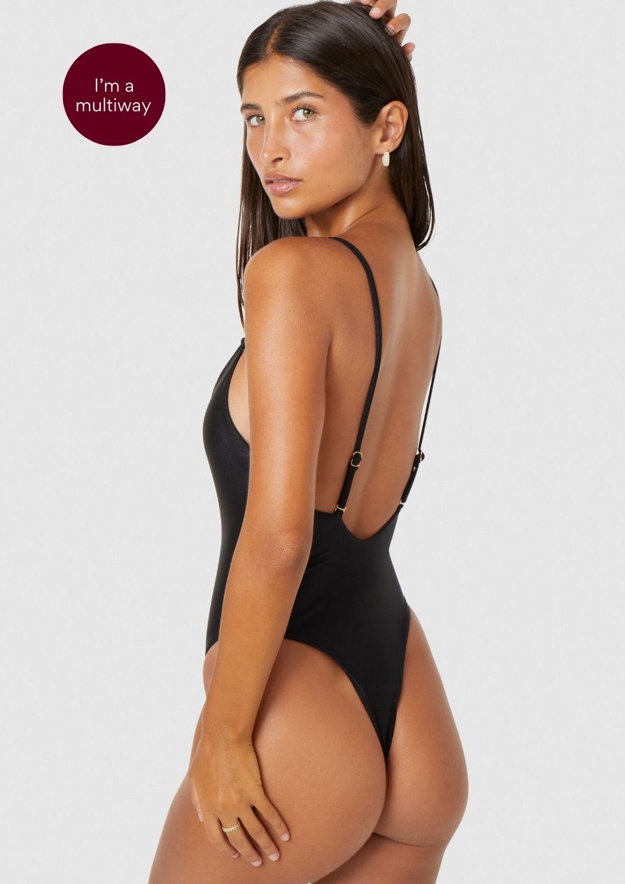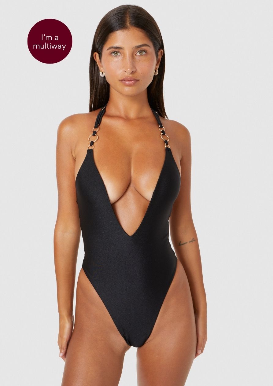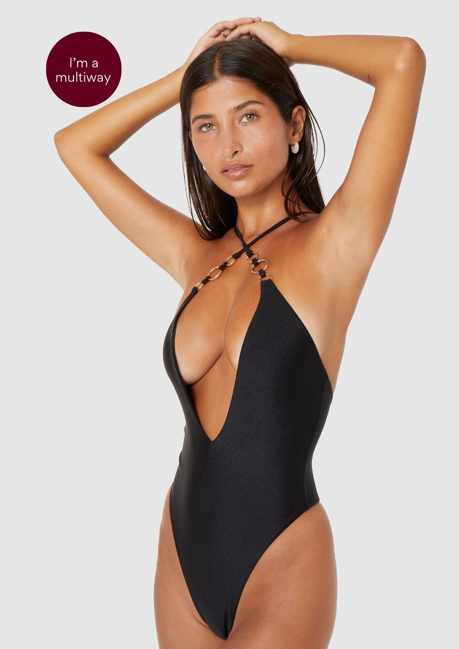 The multi-wearable CELINE one-piece is a double lined front plunge, high cut swimsuit that pulls you in at all the right places. Turning bikini lovers into swimsuit lovers one design at a time. With adjustable straps & swan hooks detailing the back enabling you to design your own swimsuit that moulds to your body and shape. Crafted in a recycled super high sheen material.