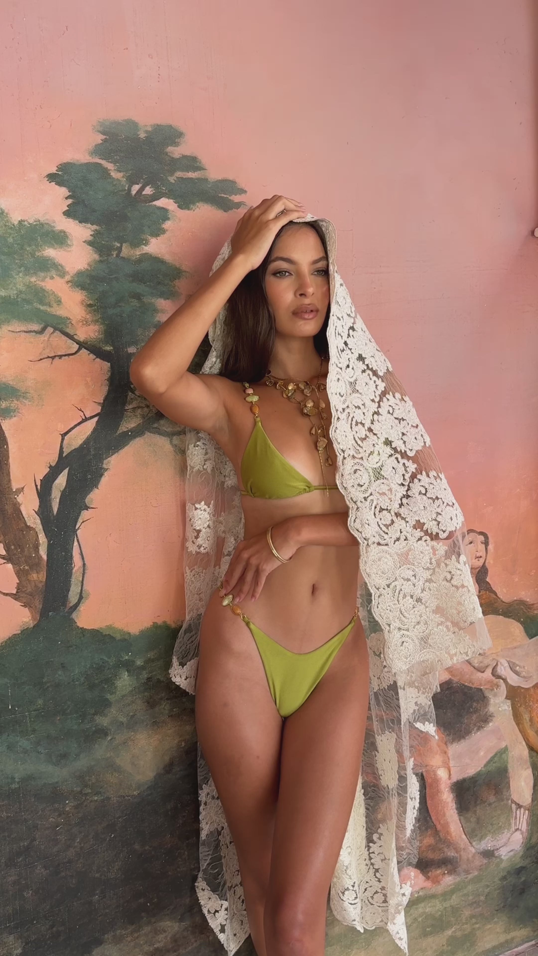 Indi, our new style with a bespoke gold resin chain. Designed to elevate your neutrals, our new Indi bikini is the perfect cheeky tanning bikini. With a dipped centre to elongate your figure - we know how to make bikini bottoms.
